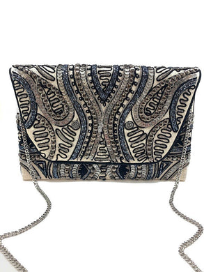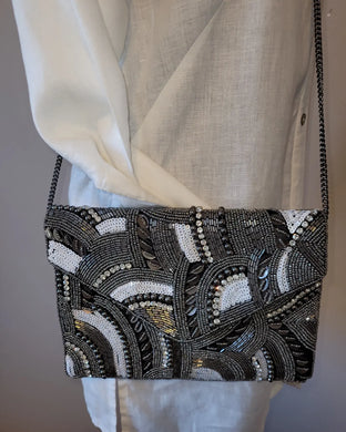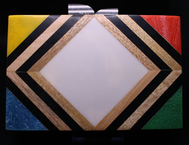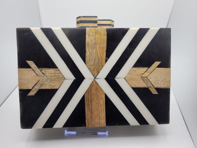 Black, White and Tan Wooden Clutch/Crossbody Bag