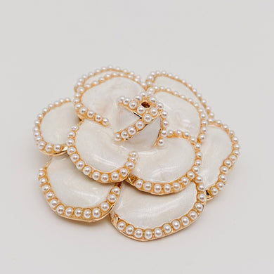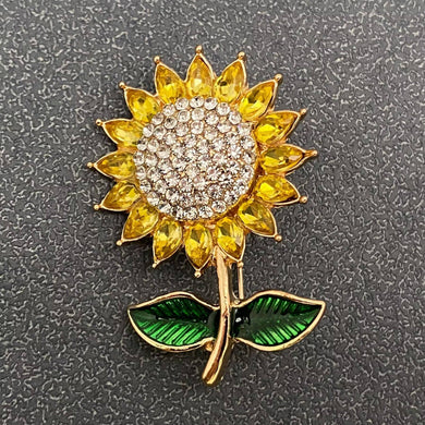 Green glass & Rhinestone Flower Shape Vintage Brooch
