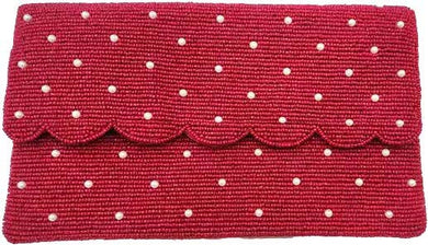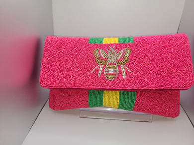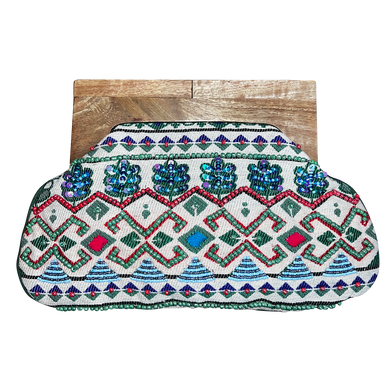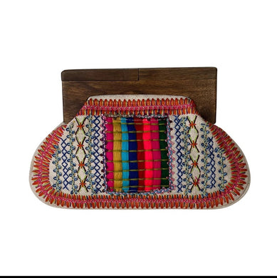 MULTI COLORED EMBROIDERED CLUTCH W/ POM POMS