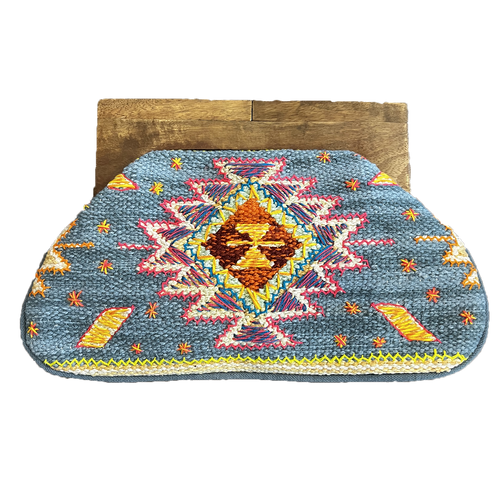 Charcoal Clutch with Pink Flowers Wooden Handle